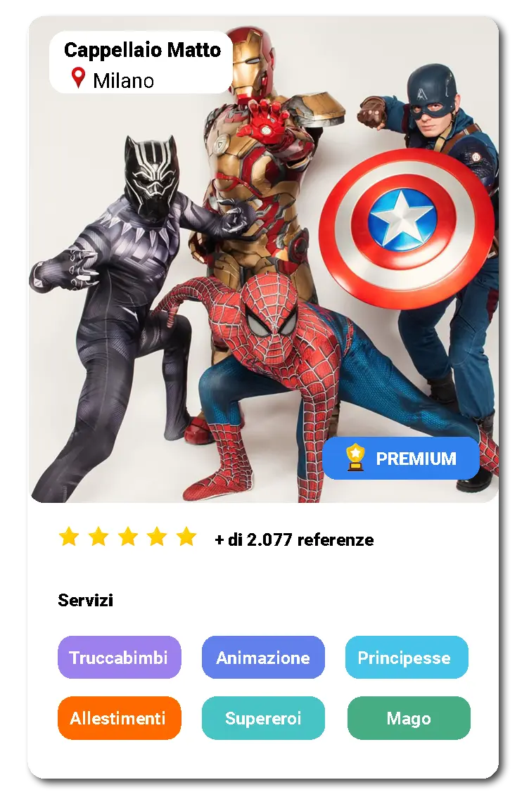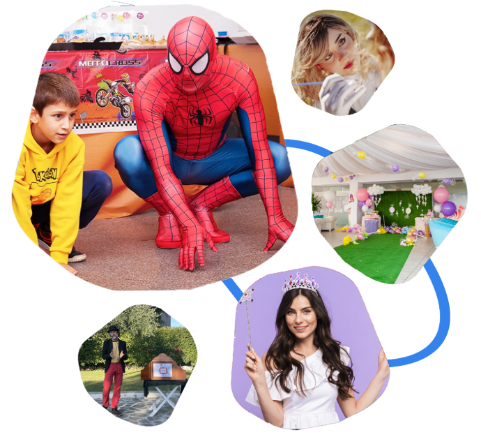 Ti aiutiamo a trovare i migliori animatori, maghi, torte, location, e tutto il necessario per l'evento che stai organizzando.