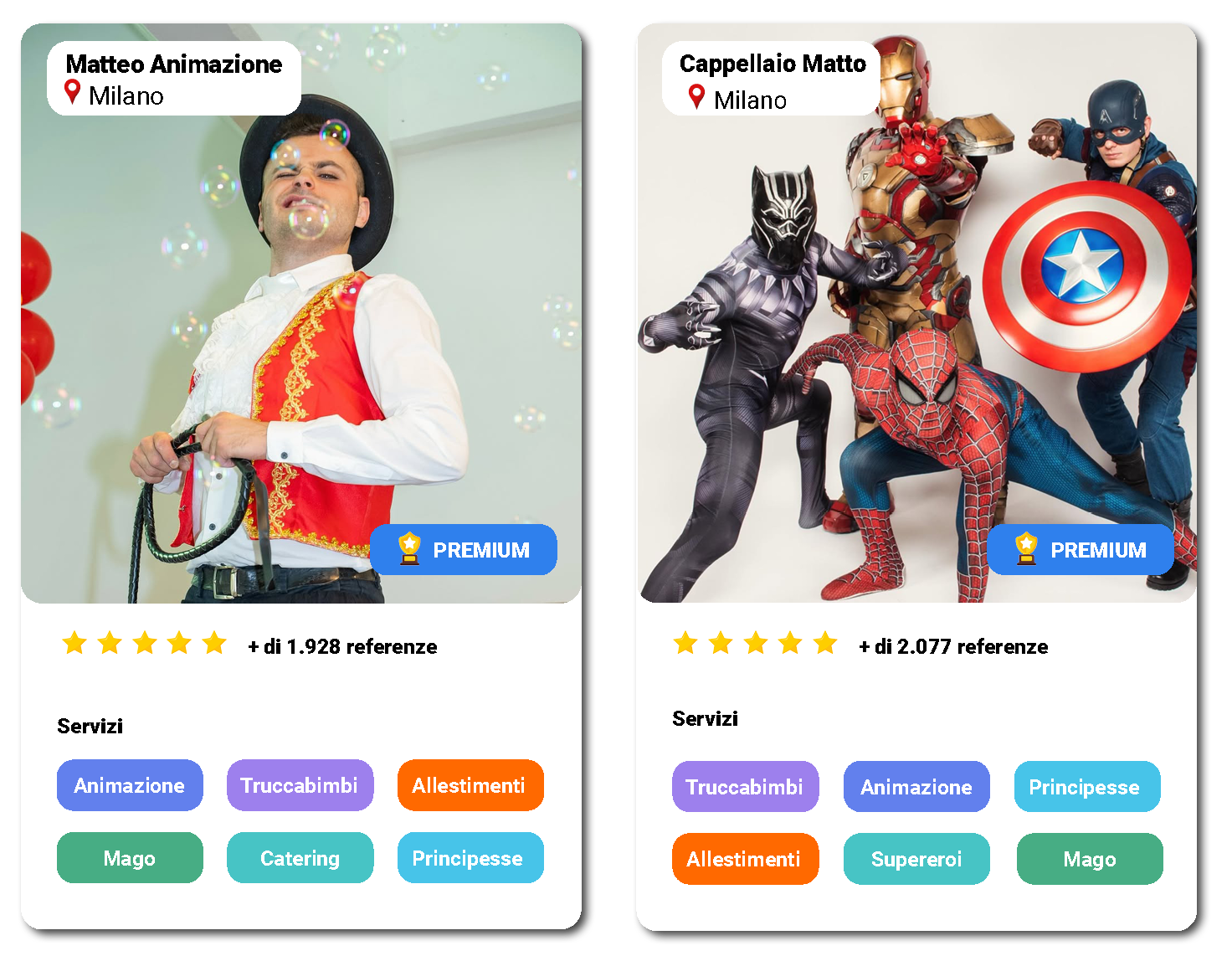 La selezione dei migliori animatori della nostra piattaforma, scegli a colpo sicuro il miglior professionista per il tuo evento.