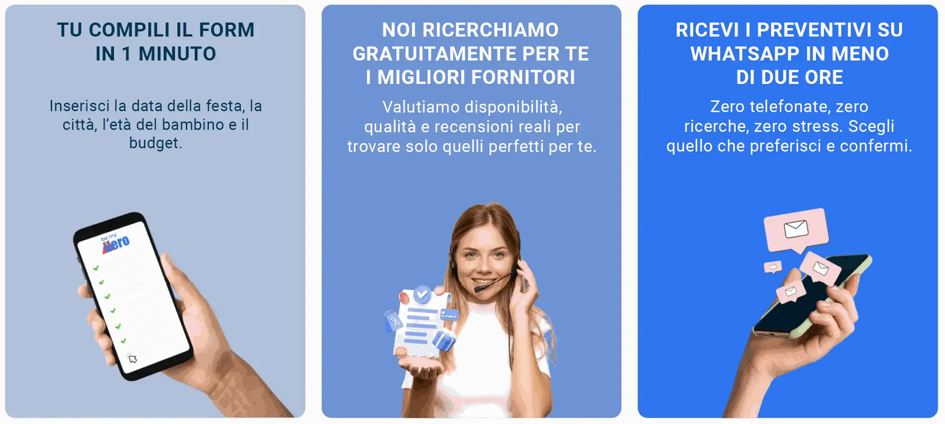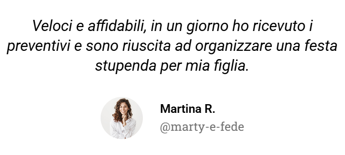 I nostri fornitori sono verificati e superano un rigido processo di selezione accurato svolto dal nostro team, per garantire alle Famiglie che la loro festa è in ottime mani.
