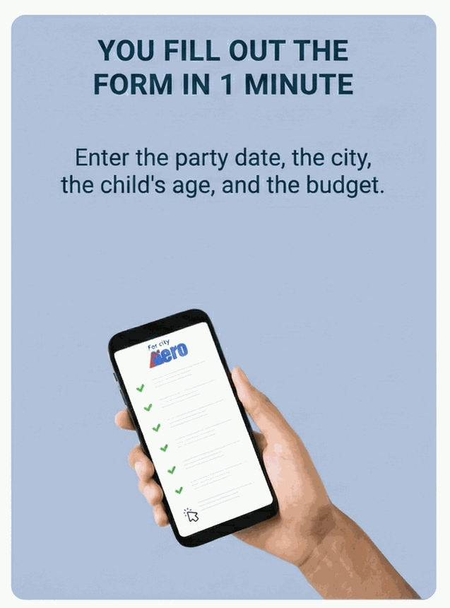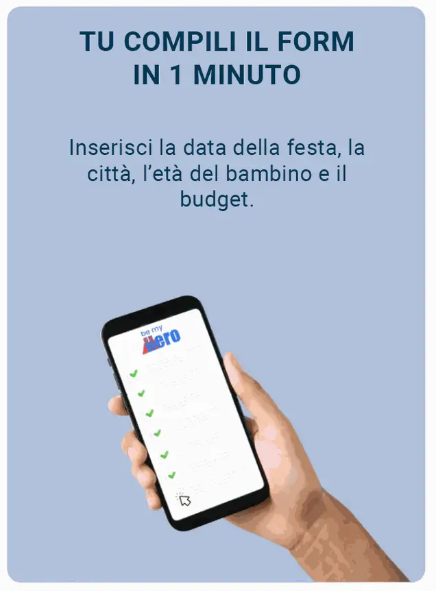 Ti aiutiamo a trovare i migliori animatori, maghi, torte, location, e tutto il necessario per l'evento che stai organizzando.